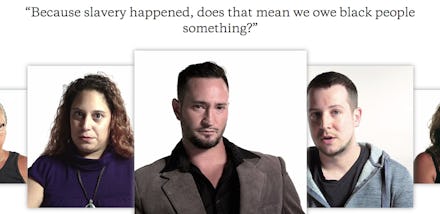 The Whiteness Project could be interpreted as a way for whites with noxious views on race to advance their hegemony on public discourse, but it's not. All Dow is doing is putting a camera in front of white folks and asking them to elaborate on their opinions, relaying the perceived inability of white Americans to grapple with racial issues in a sincere and up-front manner.