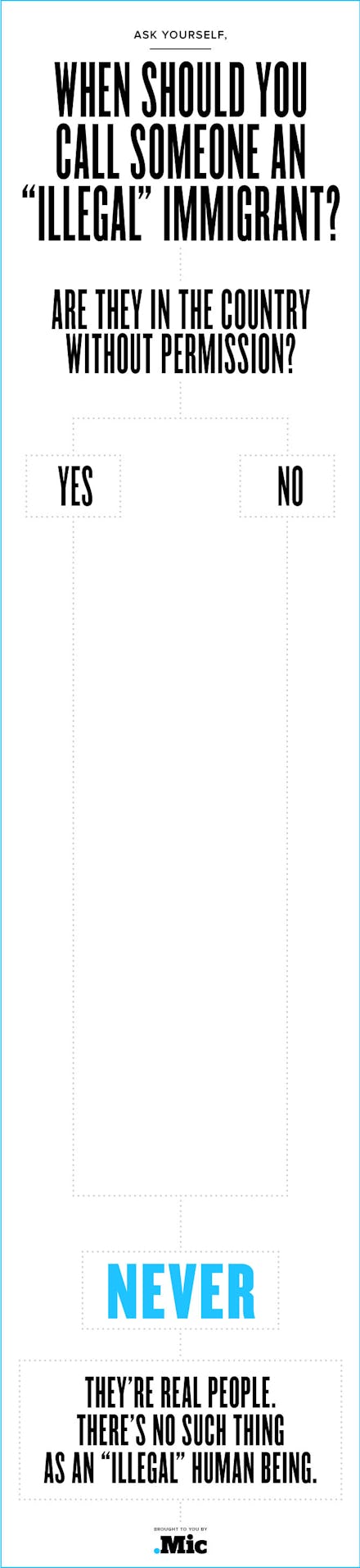 With so many conflicting constructions floating around, we figured a simple visual aid might help remind everyone that the way we talk about immigration affects real people with real lives and real ambitions. So here you have it: A simple guide for deciding when you should call someone an illegal immigrant: