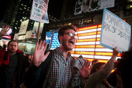 Contrary to popular narratives in the media and online, the people out on the streets to protest are doing so peacefully, following in a long tradition of civil disobedience. They're exercising their constitutional right to address grievances and to do so in a public manner. In fact, many young organizers across the country and in Ferguson have made it their mission to keep this issue at the forefront of mainstream conversations — taking to the streets is just one way they're doing so. But to conflate their efforts with the looting and destruction of property in Ferguson is both misguided and even rooted in racism.