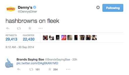 You know the types. They're companies like Denny's, Taco Bell, IHOP and Whole Foods. They tweet things like "hashbrowns on fleek," various forms of "bae" and whatever the hell this is. They interact with their customer base as if it were a 13-year-old middle schooler wearing a snapback. They pay some poor, feckless social media manager to trawl the Web looking for that #hot new #content that will put them at the forefront of cultural relevancy.