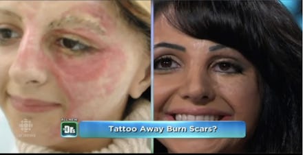 "After having three failed eyebrow hair transplants, I decided to get permanent eyebrows tattooed," Hameed told Mic. "I saw the result immediately. I was so happy that I thought to myself — why not do the same procedure using skin tone pigments on my scar tissue, to camouflage the discoloration. At the time no one had heard of anything like it, and no one wanted to take the risk."