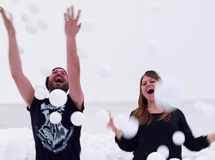 Pearlfisher's version, open in London through Feb. 13, is slightly different than what the kids play with. "Jump In!" features minimalistic white plastic balls instead of technicolor orbs, and it's categorized as an art installation rather than a venue for pure play.