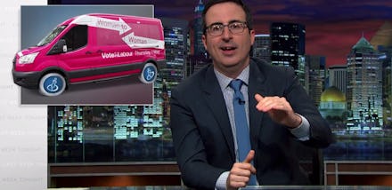 On Sunday's edition of Last Week Tonight, host John Oliver tore apart the latest example of pandering politicians missing the point entirely when reaching out to female voters: the U.K. Labour Party's new female outreach van, which just so happens to be hot pink. As Oliver sarcastically noted, these are precisely the same tactics that Mattel uses to sell Barbie vans to children.