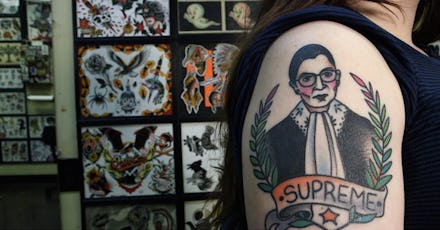 Celebrities like Lena Dunham, Janeane Garofalo, Joan Jett and Rihanna have all shown us their feminist-inspired body art. CNN even recently wrote about University of Maryland student/Notorious RBG fan Rachel Fink, who got a tattoo of Supreme Court Justice Ruth Bader Ginsburg on her upper arm.