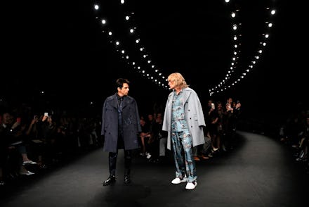 Stiller and Wilson, in character as Derek Zoolander and Hansel McDonald, respectively, were sporting some serious threads. Business Insider reports Stiller wore "a custom Night Butterflies brocade suit with hand-embroidered overcoat and black Creeper shoes," while Wilson sported "a silk continent-print pajama suit with double cashmere overcoat and open sneakers."