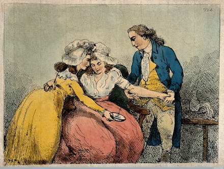 Hysteria translates to "womb disease," with a range of symptoms that included "anxiety, sleeplessness, irritability, nervousness, erotic fantasy, sensations of heaviness in the abdomen, lower pelvic edema and vaginal lubrication," according to Rachel P. Maines' The Technology of Orgasm. The ailment was treated by physicians or midwives, who applied a "genital massage to orgasm" to the woman suffering from hysteria.