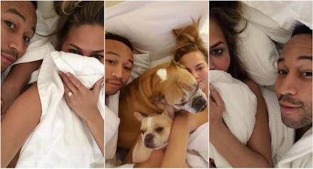 Teigen's never really been too secretive about her intimate life with Legend (she quipped onstage at the Billboard Music Awards earlier this month, "I bang a musician"). Even better is that her Twitter feed is filled not only with shout-outs to her husband, but with what we can only describe as "homebody porn" — photos of her cooking, watching TV, playing video games, hanging with her dogs and, yes, cuddling in bed with John.