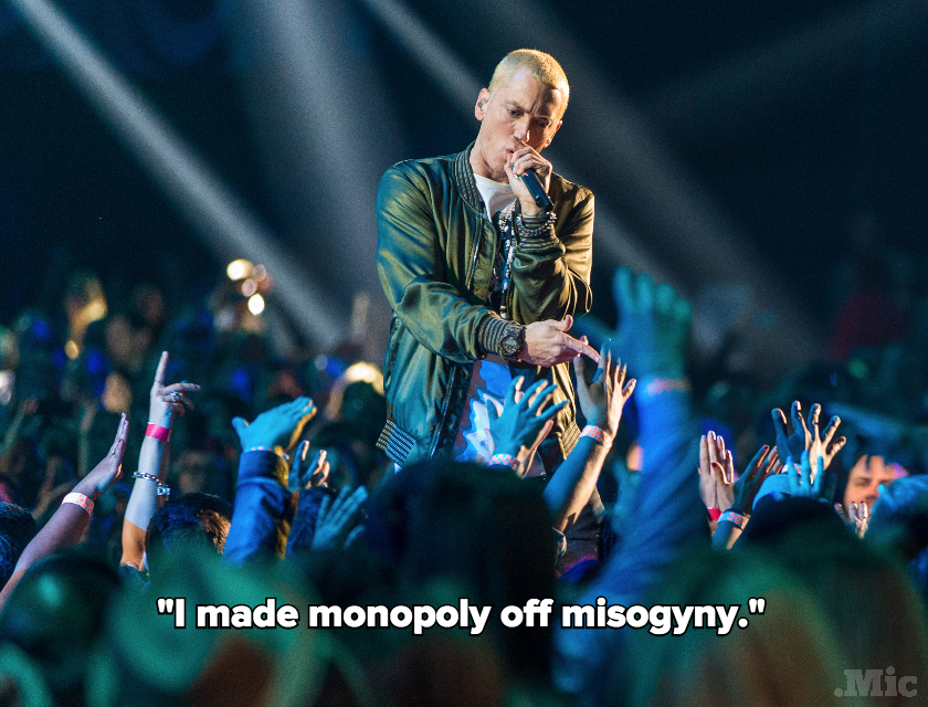 "I see the bitch in you Caitlyn," Eminem rapped. "Keep the pistol tucked like Bruce Jenner's dick." He then offered a half-assed apology, getting one more transphobic genitalia-mention in there: "No disrespect though, not at all, no pun intended, that took a lot of balls."