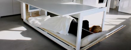 You know that one super-peppy coworker who obnoxiously brags about the health benefits of his standing desk? Well, a Greek design company has officially developed the ultimate comeback for those boasts: a straight-up napping desk.