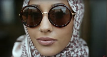 So-called "Muslim style" leans toward a more modest aesthetic, but that doesn't mean it can't be absolutely stunning. In Idrissi's ad, she stands in a doorway, glamorous as all get-out, in a blush coat with a checked hijab and a pair of oversized sunglasses, while the ad's voiceover calls her "chic."