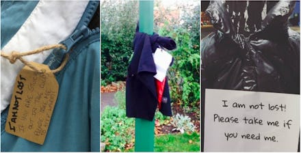 The Portland, Maine native spent a total of $5 at her local Goodwill shop to get five coats, which she then went and wrapped around light poles around the city with a note: "I'm not lost! Please take me if you need me."