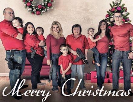 This holiday, Assemblywoman Michele Fiore of the Nevada State Legislature is wishing everyone health, happiness and firearms. On Tuesday, the lawmaker posted a Christmas card-style photo to her Facebook that shows Fiora and family members young and old posing with guns. "It's up to Americans to protect America," Fiore captioned the post. "We're just your ordinary American family."