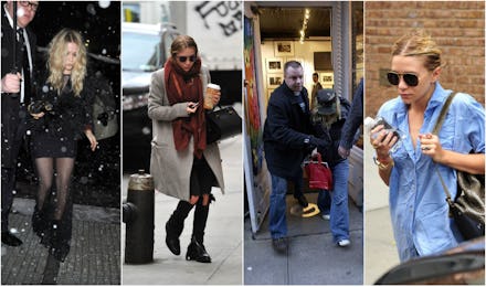 The paintings are by Laura Collins, a Chicago artist who just so happens to have a knack for painting pictures of the twins hiding from the paparazzi. They're a lot like Degas' paintings, but instead of ballet dancers, it's MK hiding behind a Starbucks cup.