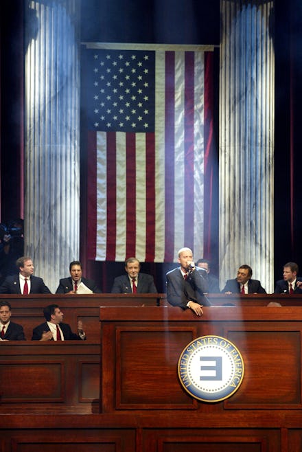 The rapper also muses about what an Eminem Administration would look like. After "gettin' off" his next order of business would be "walkin' up to Uncle Sam/ Naked, laughing, dick cupped in hand/ Screaming, 'Fuck safe sex,' throw a latex and an AIDS test at him."