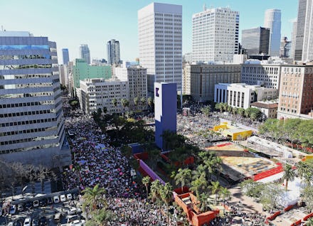 Organizers expected 80,000 people to show up to march in Downtown LA, one NBC LA reporter said in a tweet. But the total was closer to 750,000, according to updates from the organizers.