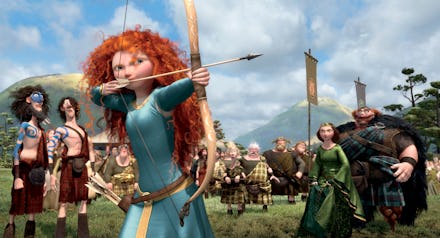 Since then, the idea of Disney princess has been permanently altered. Tiana in The Princess and the Frog dreams of opening a restaurant; finding a man is not in her plan. And Tangled's Rapunzel not only instigates her own adventure, but also saved Flynn/Eugene multiple times along the way. The era of the helpless damsel seems to be over. And this has only been cemented with the most recent inclusion of Merida. Brave is the first Disney princess story not to feature a romantic plotline, instead choosing to focus on the dynamics of the family. Brave is not so much about overcoming any one thing. It's actually about the choices and sacrifices a young woman must make as she grows and matures (and she just so happens to ride a horse and shoot a bow).