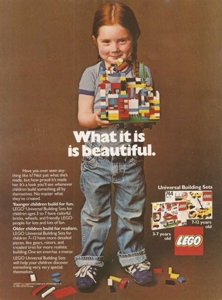 There was a time when Legos were simply bricks — non-gendered bricks — without any cultural stereotypes restricting their usage. This Lego is perfectly encapsulated by the inspiring 1980s ad that went viral last month, featuring an adorable redheaded girl proudly holding her creation.