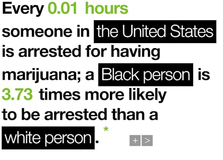 On Tuesday, the American Civil Liberties Union launched The Uncovery, an interactive website that documents the myriad injustices linked to marijuana arrests and convictions. With special focus on the law's racial disparities, the site allows users to take statistics and share them with friends or legislators as engaging customizable graphics. The whole process takes 60 seconds or less.