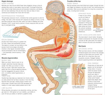 Bonnie Berkowitz and Patterson Clark made an awesome infographic of all the health problems someone can develop just by spending too much time in a chair.