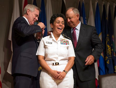 Navy Secretary Ray Mabus said at the ceremony that the momentous event is a "representation of how far we have come, and how far she has helped bring us."