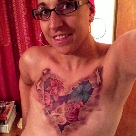 Ritzco designed the striking body art last year, joining a larger trend among breast cancer survivors, many of whom have gone to great creative lengths to turn their bodies into meaningful canvases. "She wanted it to look like her chest was bursting open," Sara told Mic. "Ugly on the outside, beautiful on the inside." Barto's desire that her friend's selfie go viral was born out of Ritzco's own desire to use her tattoo to help inspire other survivors. For better or for worse, breasts are still intrinsically tied to femininity and womanhood.