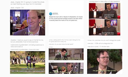 It’s nerdy humor and certainly isn’t always top tier comedy, but it is simple and good-spirited. There’s so little left online that doesn't ask anything from you. It’s basically just SparkNotes and those pages that only post astrology memes or puppy pics.