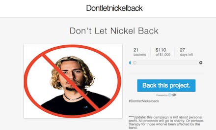 It's an age old problem: Everybody hates Nickleback, yet still there is a Nickelback. Last week, one brave fan decided to do something about it. Craig Mandell started a crowdsourced campaign to prevent the most hated band in rock 'n' roll from playing any more shows in the U.K. And it's blowing up.