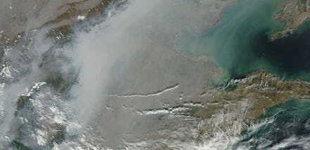 Earlier this month, NASA's Earth Observatory released the below photo, capturing a thick blanket of haze obscuring much of northern China. During that time, the depicted region experienced levels of smog that are 20 times higher than the World Health Organization's safety limit, forcing Beijing to raise its air pollution alert to the second-highest level.