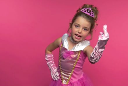 The young girls may be flipping the dainty "damsel in distress" trope on its head by cussing in princess costumes — it's certainly an effective attention-grabber — but the novelty and humor at play is masking some important questions.