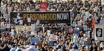 Republican Rep. Cory Gardner of Colorado, mentioned in the tweet above and who is challenging incumbent Sen. Mark Udall for his seat, has gone so far as to sponsor a federal personhood amendment. This amendment defines personhood as including "each and every member of the species homo sapiens at all stages of life, including the moment of fertilization, cloning, or other moment at which an individual member of the human species comes into being." Something that Stephen Colbert had a field day with on his show last week.