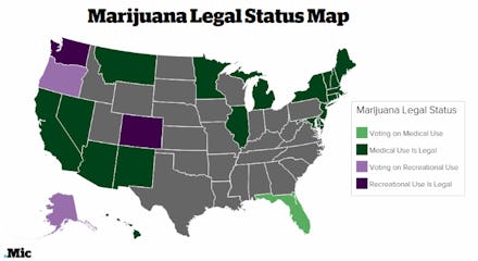 While Florida is the only state on this list legalizing for medical purposes, it's still a significant event, because it's a national political battleground and no other states in the South allow marijuana for medical use.