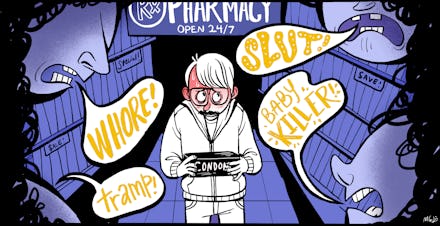Would men be forced to endure the same kinds of stigmas and shame as women? In a cartoon created exclusively for Mic, artist Mady G flips the script, imagining an alternate reality where men walk a reproductive rights gauntlet, complete with slut-shaming rhetoric, body policing and moral hyperbole:
