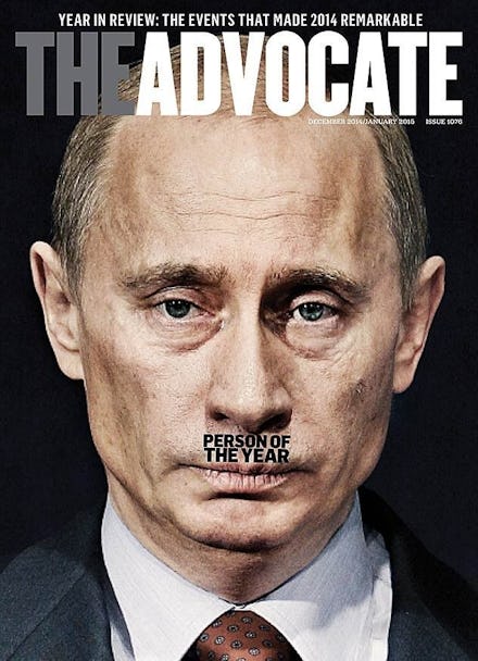 The news: LGBT magazine the Advocate has named its 2014 person of the year: virulently anti-gay Russian President Vladimir Putin.