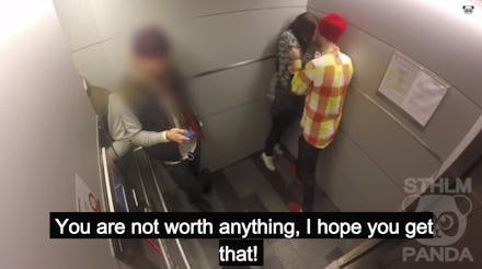 Many people simply wouldn't. That's the takeaway from a new video produced by Swedish prank and "social experiment" group STHLM Panda. The video shows a male actor pretending to abuse a female actor in an elevator, both physically and verbally in front of other passengers.