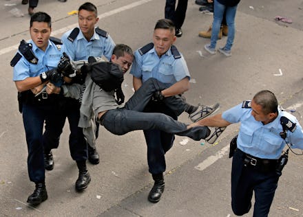 "I came to defend Mong Kok," Cyril Wong, a sales representative, told the New York Times. "They want to clear this place. We will just stay here and defend it. If they use pepper spray or sticks, we will defend ourselves. We never attack the police."