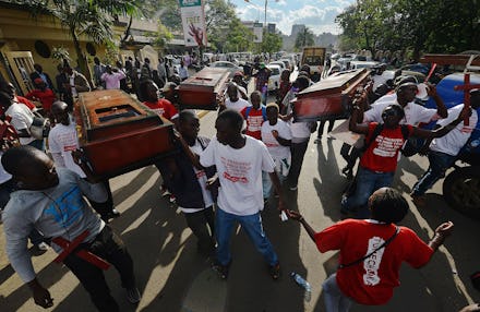 Months of unrest came to a head Tuesday as hundreds of Kenyans stormed the streets of Nairobi with coffins and red crosses to protest the government's failure to stop violence perpetrated by the militant Somali group al-Shabab.