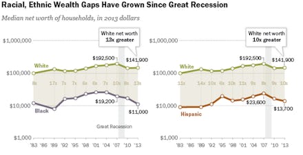 The wealth gap between white Americans and black and Hispanic Americans has widened in the years since the recession, according to a new Pew Research Center study. It's another sign that coasting to recovery isn't going to be enough for many of the country's most vulnerable people.