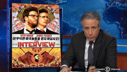 Stewart was referring to The Interview, the controversial James Franco and Seth Rogen comedy that reportedly riled up North Korea and compelled its team of hackers to leak private emails of Sony employees.