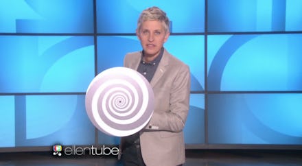 "I'm not here to brainwash anyone," DeGeneres added, before holding a spinning vortex prop to "brainwash" her audience.