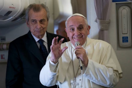 "The freewheeling encounters have become a hallmark of Francis's simple style, his penchant for straight talk and his ease at using colloquialisms to make his point," Reuters notes. "Speaking about corruption, he disclosed that, in his native Argentina in 1994, he almost kicked two government bureaucrats 'where the sun doesn't shine' after they tried to involve him in a kickback scheme."