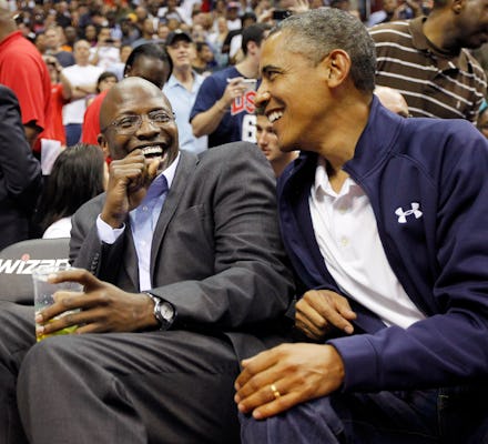 That elbow set basketball back almost a decade. You know, we were playing basketball all the time until that day. It was really a sad day [laughs]. It was even funnier because before [Obama] got his stitches, I'd gotten stitches the year before, and the whole joke that he had was "It's better you than me."