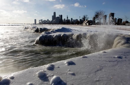 Sea ice covers 15% of the earth's water at some point in the year, according to the National Oceanic and Atmospheric Administration. So when this happens, like when it did recently in Nantucket, loose needle-like ice crystals called frazil begin to form. As that happens, salt, which doesn't freeze, gets left behind. So, in addition to looking like a frozen wave, after a while the ice that forms actually becomes drinkable.