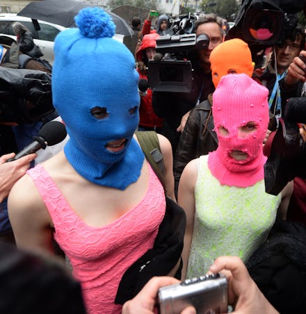 The band is branching out from their original function as a vicious check on Russian political power. In August 2012, Tolokonnikova and Alyokhina were arrested for "hooliganism motivated by religious hatred," and were held in prison for two years. The charges came after Pussy Riot performed on the steps of Moscow's Christ Savior Cathedral, and were dragged away after screaming, "Mother Mary, please drive Putin away." Watch that performance here: