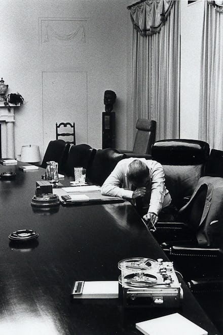 Abrams: "Kissinger and other people in his cabinet referred to him as 'our drunken friend' or 'our drunk,' but he actually didn't drink heavily, necessarily, though he would have a martini or have a scotch. But during Watergate, when he was so stressed out, he was popping pills. And mixing those pills with the alcohol is what really fucked him up. He would make these late-night, famous drunken slurry phone calls to his friends. He would fall asleep on the phone or his friends would just let him talk."
