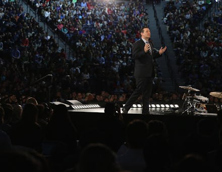 "Imagine young people coming out of school with four, five, six job offers," Cruz said, pacing the arena-theater like a mega-church pastor at the school's weekly convocation ceremony, for which attendance is mandatory, according to the New York Times. "Imagine America finally becoming energy self-sufficient as millions of high-paying jobs are created!"