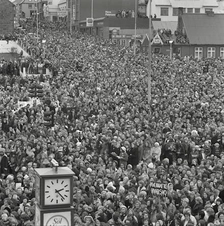 That's precisely what the women of Iceland did on Oct. 24, 1975. Now celebrated annually as "Women's Day Off," the holiday remembers the 25,000 women (more than one-tenth of the entire population at the time) who gathered in the capital of Reykjavik to protest economic inequality for women, from unequal pay in the workplace to women's uncompensated housework and child care at home.