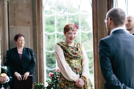 Kickass alternative: Any other color. The white wedding dress is a relatively modern invention, popularized by Queen Victoria when she married Prince Albert in 1840. Which makes it only natural that these days, there's a growing number of brides shunning the traditional white or ivory altogether in favor of something a little more colorful, like Kathryn did when she married Alex in a gold Issa dress in 2013. Meanwhile, Alison chose a jewel-toned Vivienne Westwood frock for her Scottish castle wedding just this month.