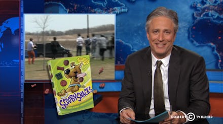 So far, cable news has covered everything from what Stewart called "Monday's Chipotle Tex-Mexxurection to Tuesday's 'oh my god oh my god ohmygod that's her car.'" The latter drew the majority of Stewart's ire, particularly for how ridiculous the image of dozens of adult reporters running looked.