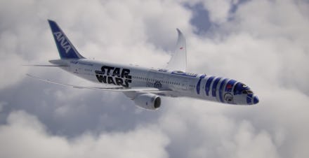 Scheduled to begin flights in fall 2015, the droided-up Boeing 787-9 Dreamliner is part of ANA's larger campaign, the "Star Wars Project," planned through 2020. (Though ANA's Star Wars website doesn't give much detail, the campaign will supposedly "connect Japan to the global market.")