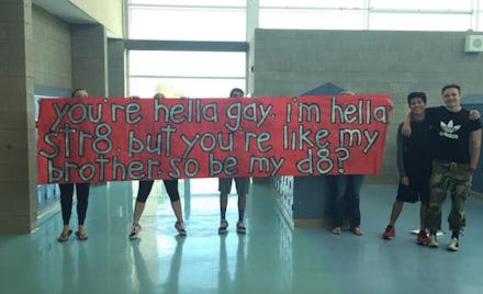 It's an adorable story — boy meets boy — with a 2015 twist. As being an ally becomes more and more a part of the high school experience, it's inspiring to see a pair of bros taking the hetero-homo friendship to new heights.